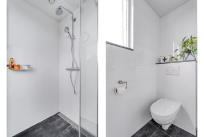 Op de eerste verdieping bevinden zich drie slaapkamers en een nette badkamer met tweede toilet, inloopdouche en wastafelmeubel.