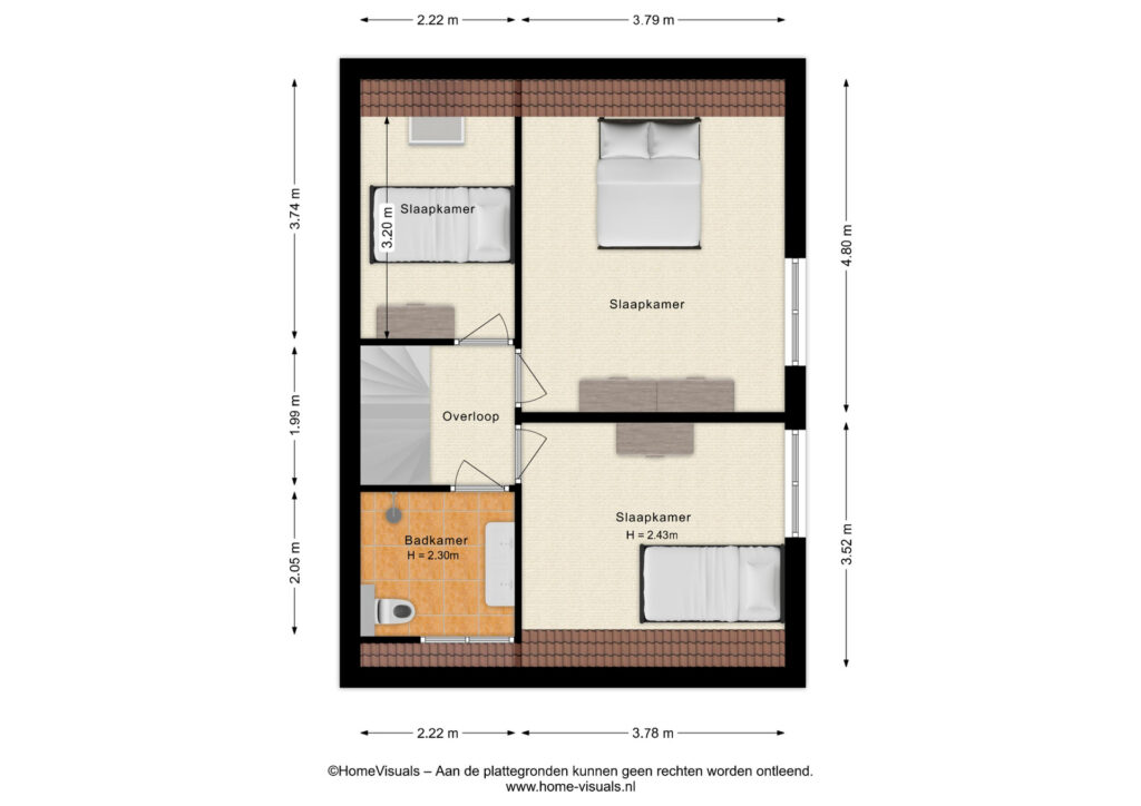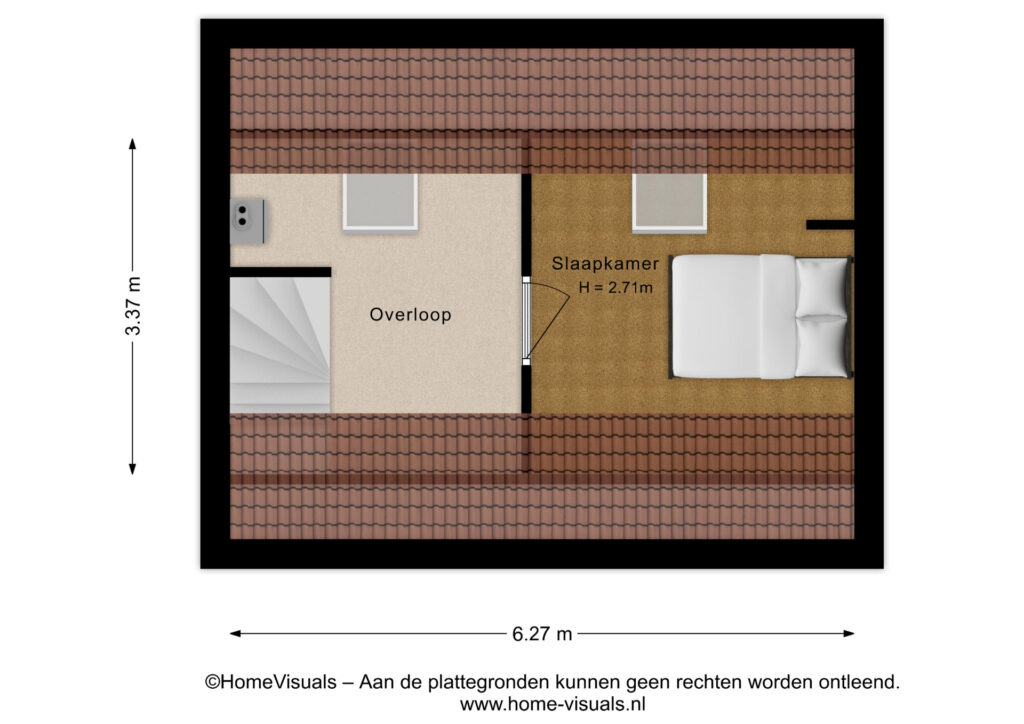 Via een vaste trap is er toegang tot de tweede verdieping waar de vierde slaapkamer zich bevind.