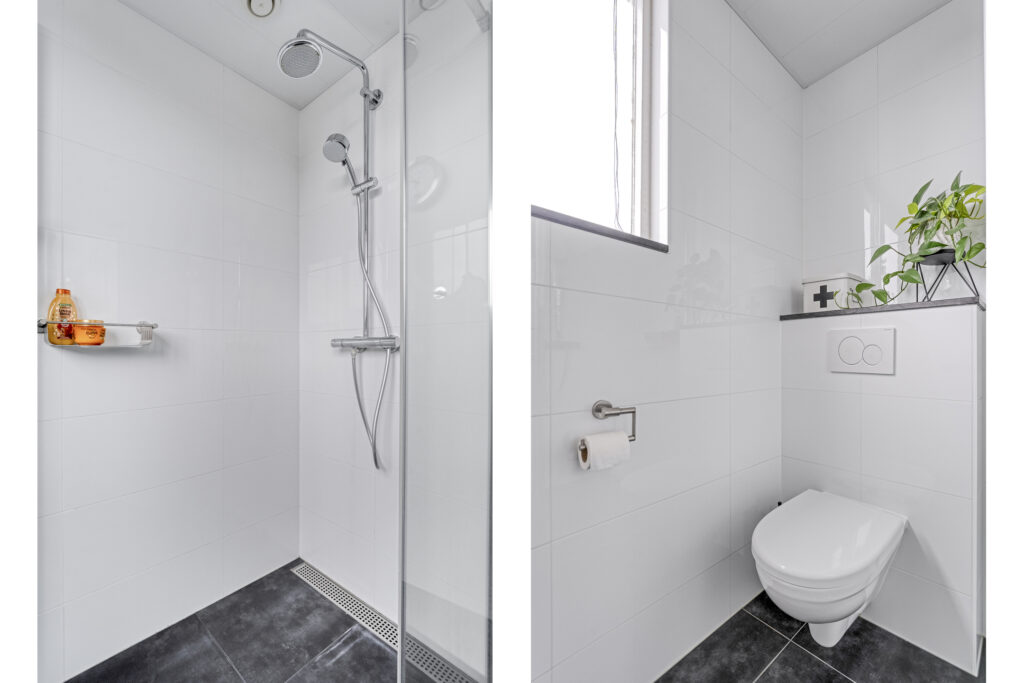 Op de eerste verdieping bevinden zich drie slaapkamers en een nette badkamer met tweede toilet, inloopdouche en wastafelmeubel.