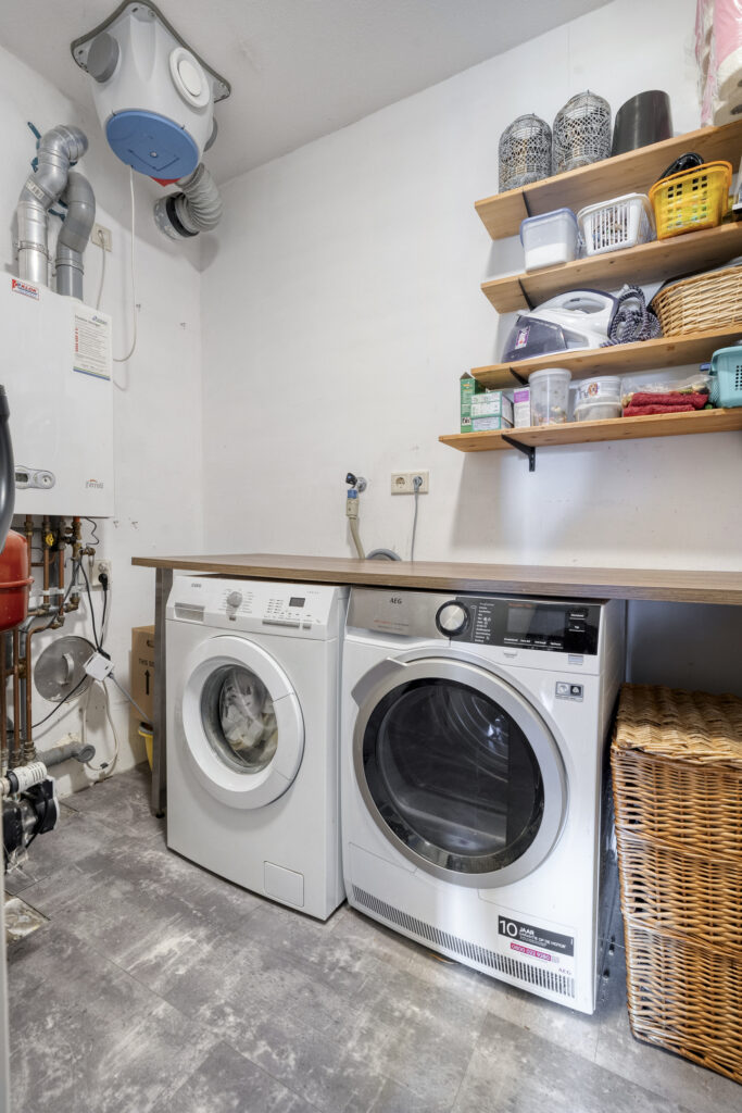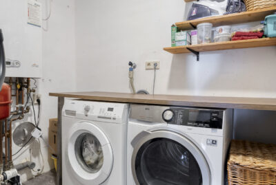 Verder zijn er twee ruime slaapkamers, een toilet en een praktische wasruimte waar zich de wasmachine-en droger aansluiting bevindt.