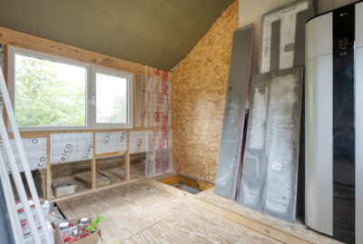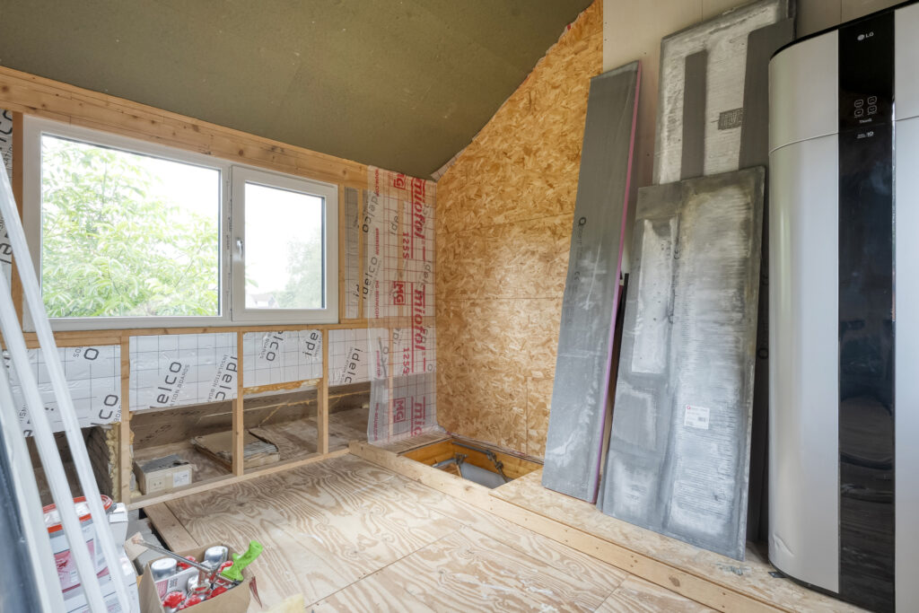 Een warmtepompboiler voorziet de gehele woning van warm water.