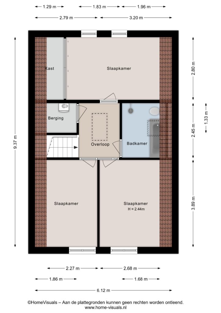 De bergzolder is bereikbaar via een vlizo trap.
