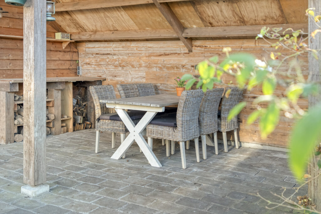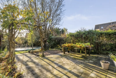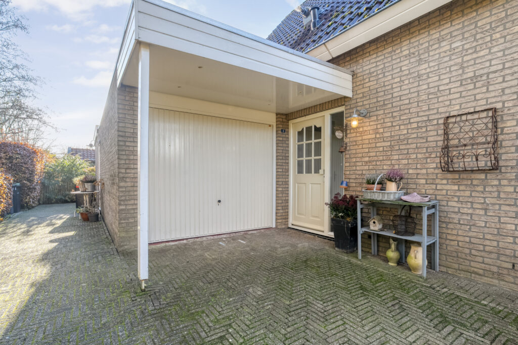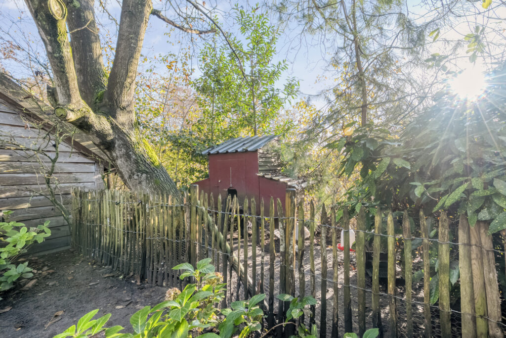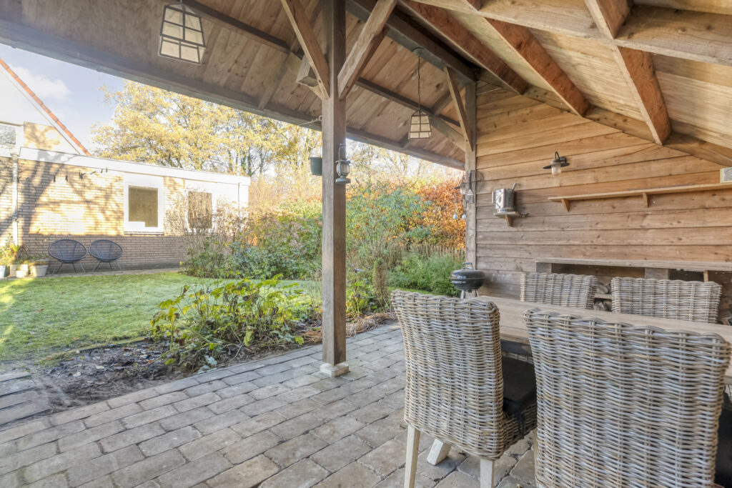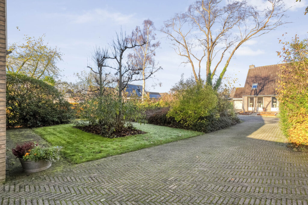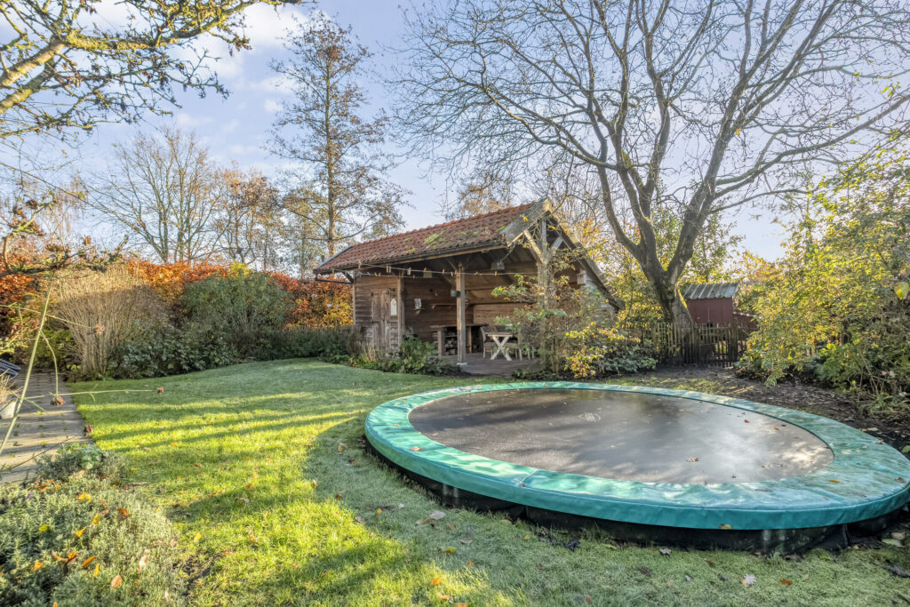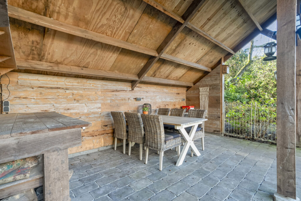 In de tuin staat ook nog een houten berging met overkapping en er is een ruime oprit die plaats biedt voor meerdere auto’s.