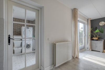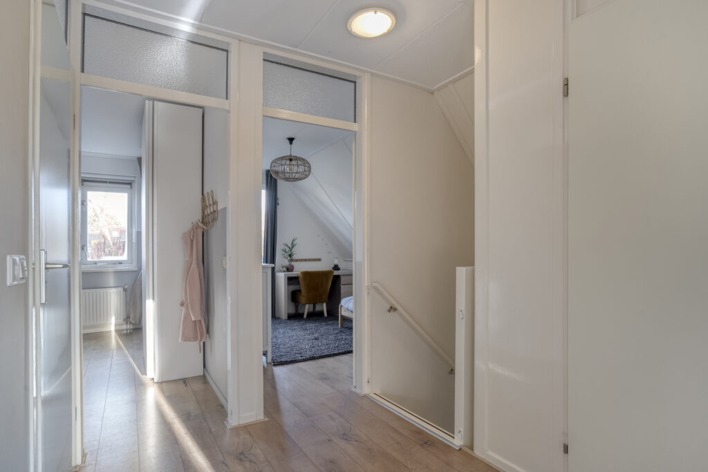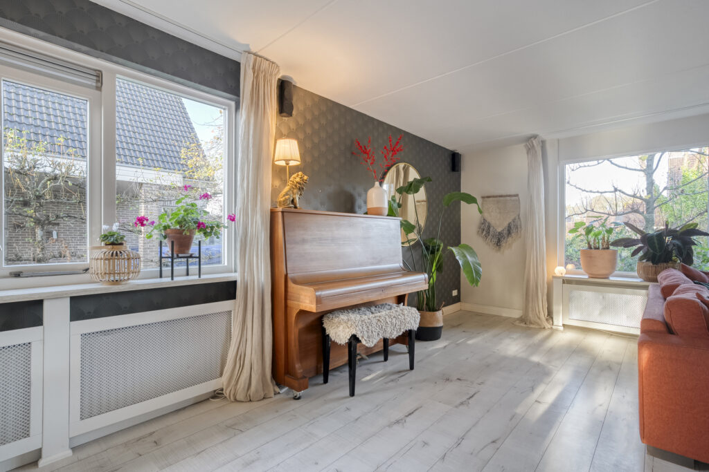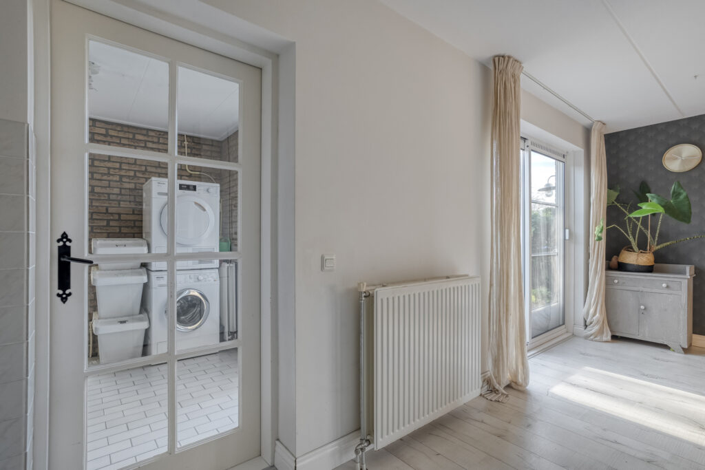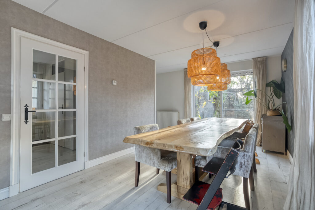 De woning beschikt over een ruime woonkamer met fijne lichtinval en vanuit de eetkamer loop je door de schuifpui zo de achtertuin in.