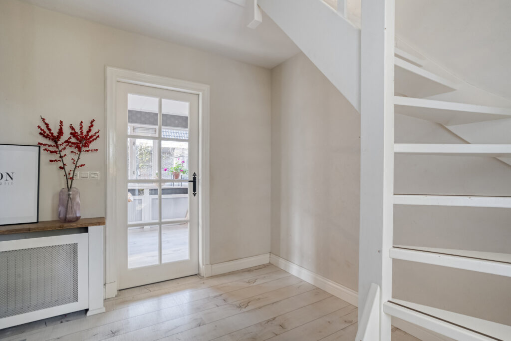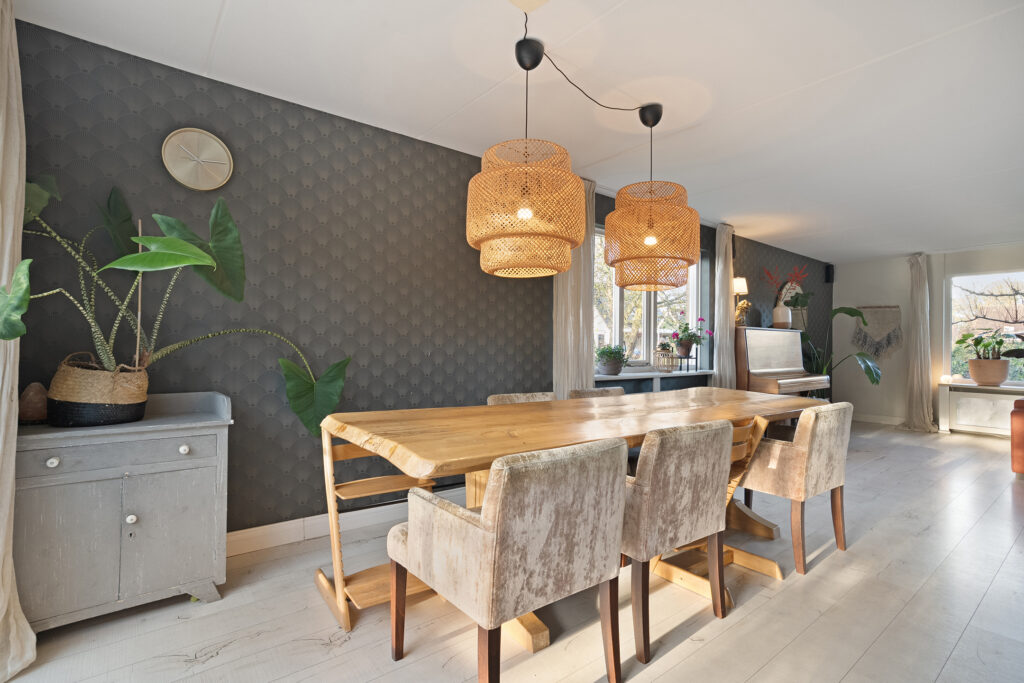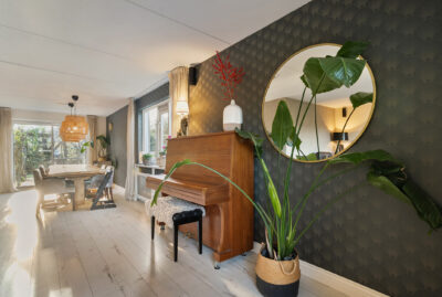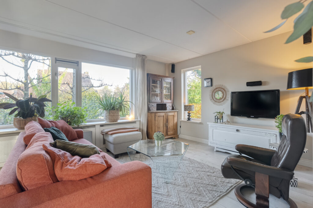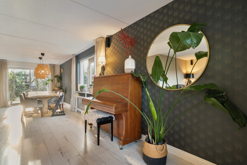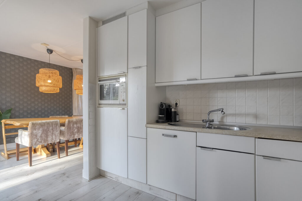 De woning beschikt over een ruime woonkamer met fijne lichtinval en vanuit de eetkamer loop je door de schuifpui zo de achtertuin in.