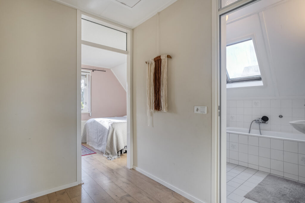 Wat ook opvalt is de slaapkamer met aangrenzende badkamer op de begane grond, ideaal voor mensen die graag alles gelijkvloers willen hebben.