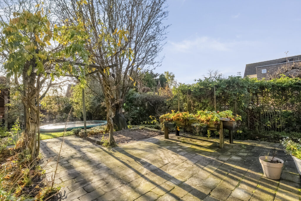 De woning heeft een heerlijk omringende tuin waar je naar hartenlust kunt tuinieren, een moestuin kunt aanleggen of een schaduwrijk plekje of juist een zonnig plekje kunt opzoeken.