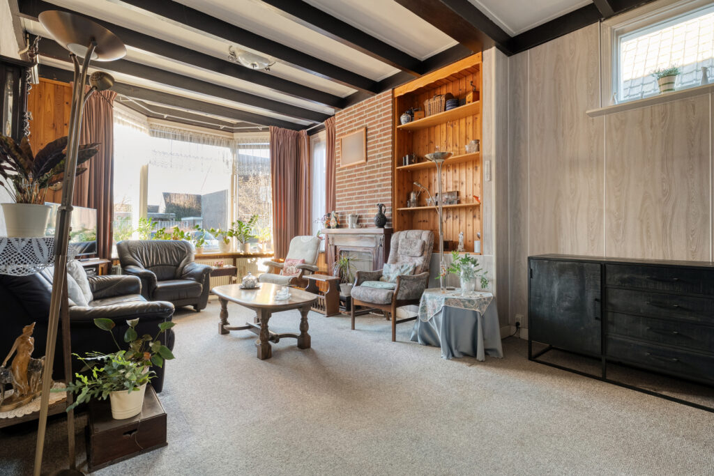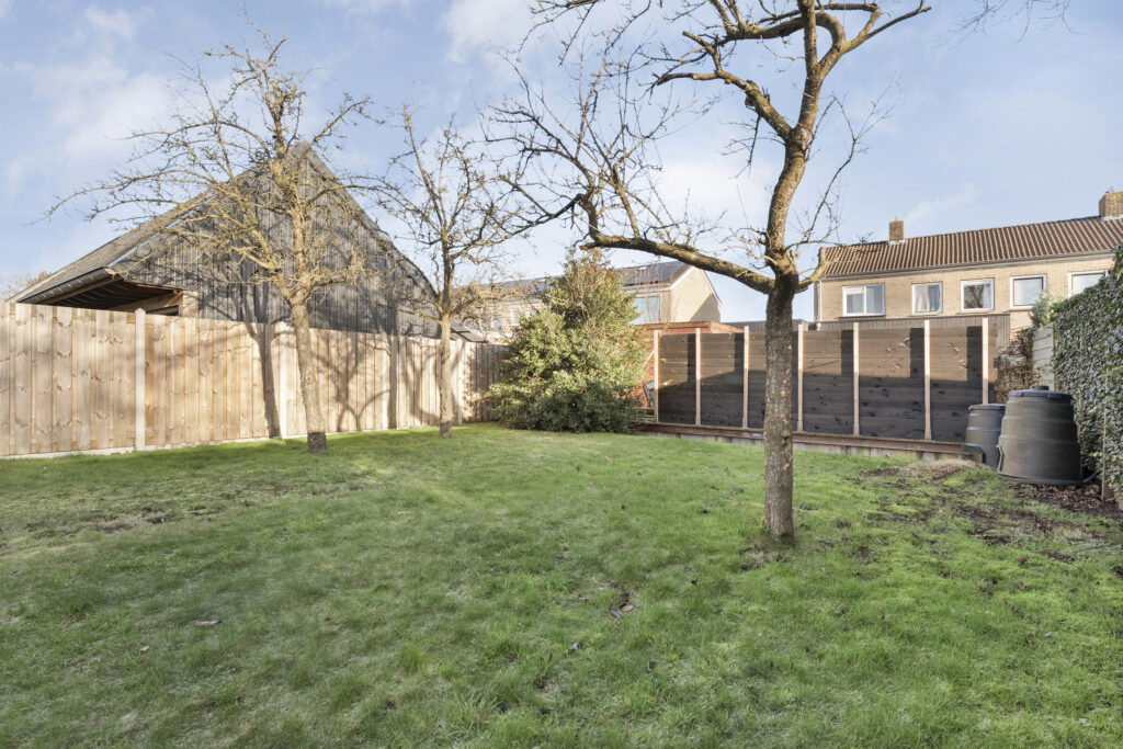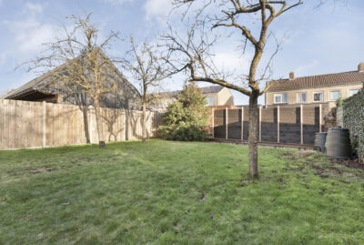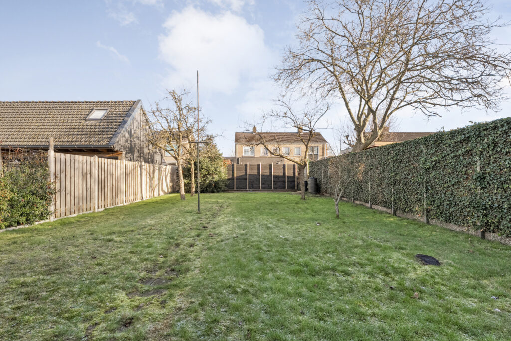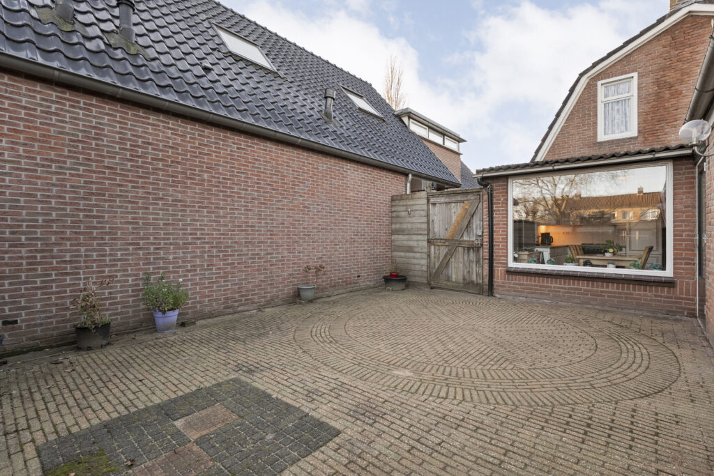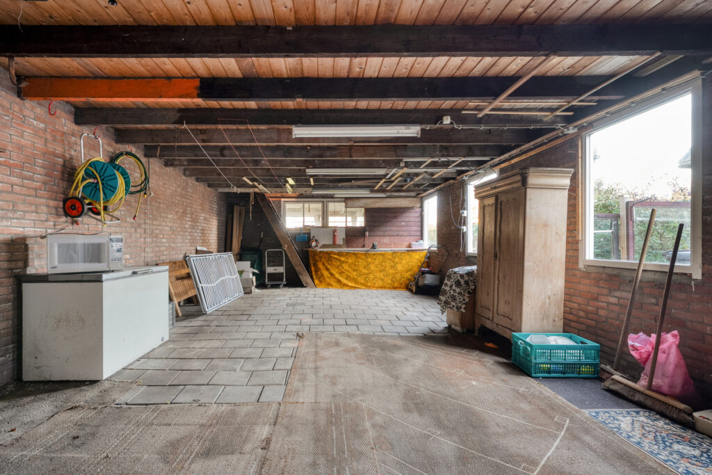 Verder beschikt de woning aan de voorzijde over een eigen oprit en de voortuin, achter de woning is een grote aangebouwde schuur en de diepe achtertuin.