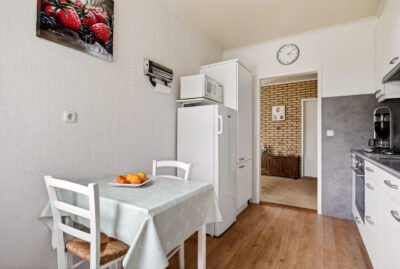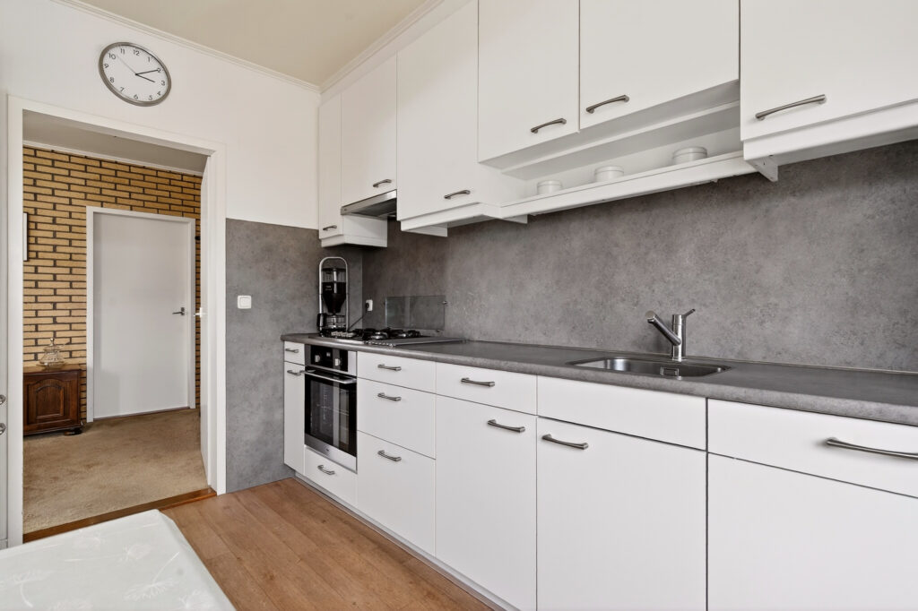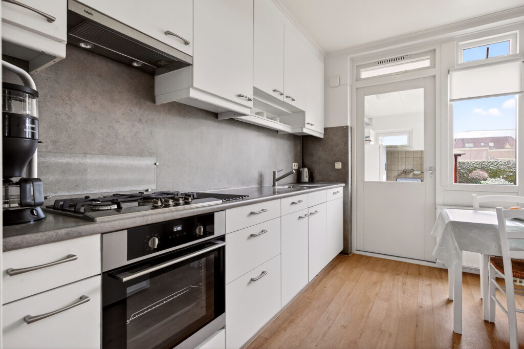 De woning heeft een gesloten keuken met aangrenzend de bijkeuken met de wasmachine-en droger aansluiting en toegang tot de achtertuin.
