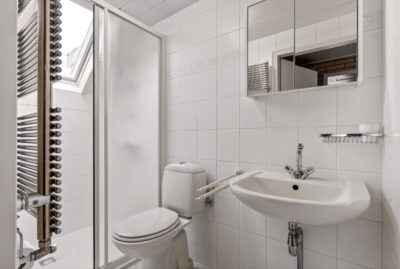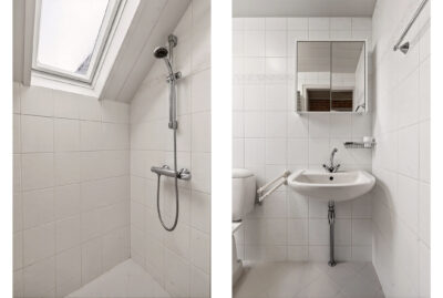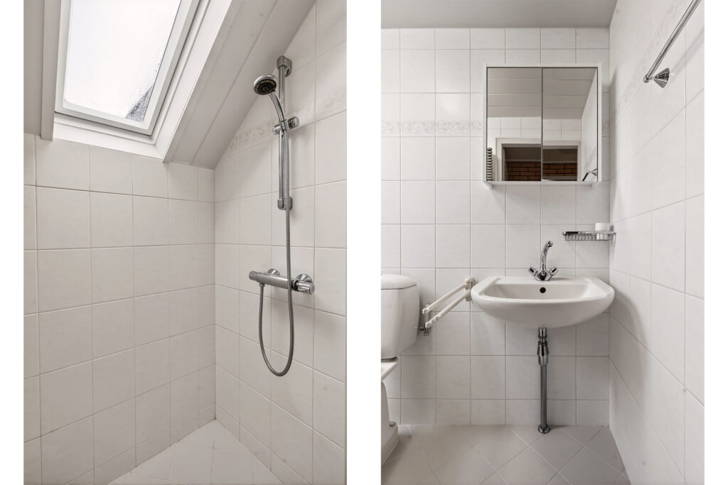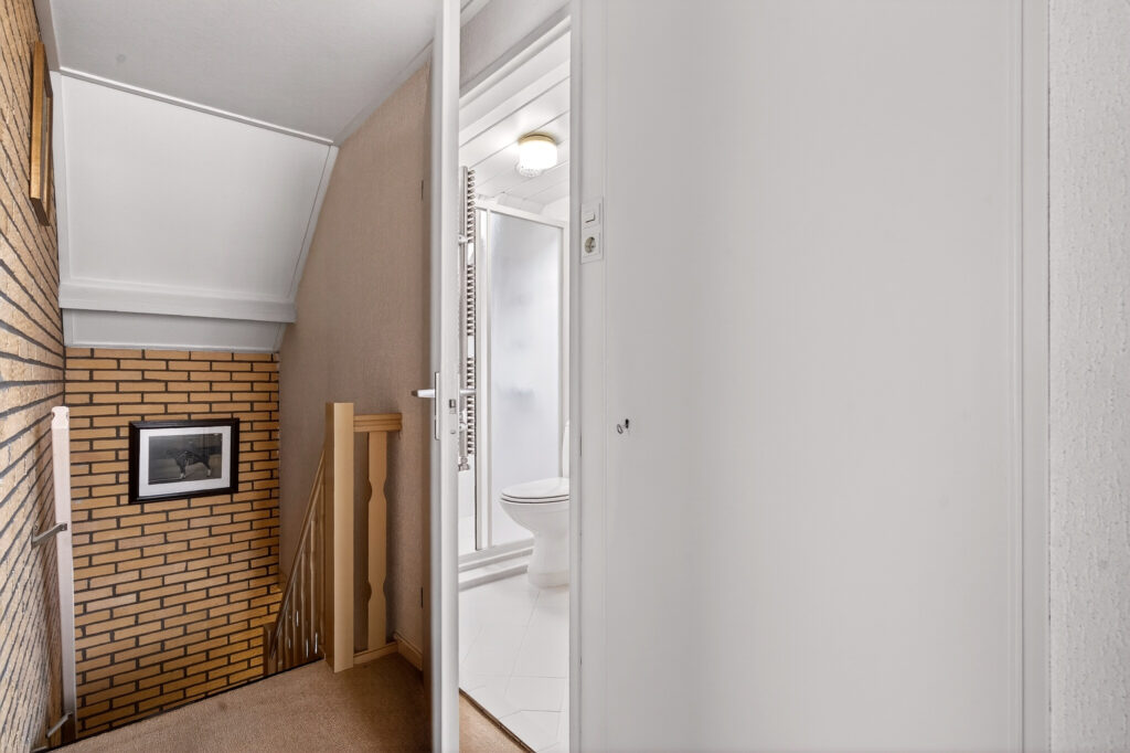 De bovenverdieping biedt 3 comfortabele slaapkamers met bergruimte achter de schuine kanten en vaste kasten. De badkamer is uitgerust met een tweede toilet, douche, wastafel en designradiator.