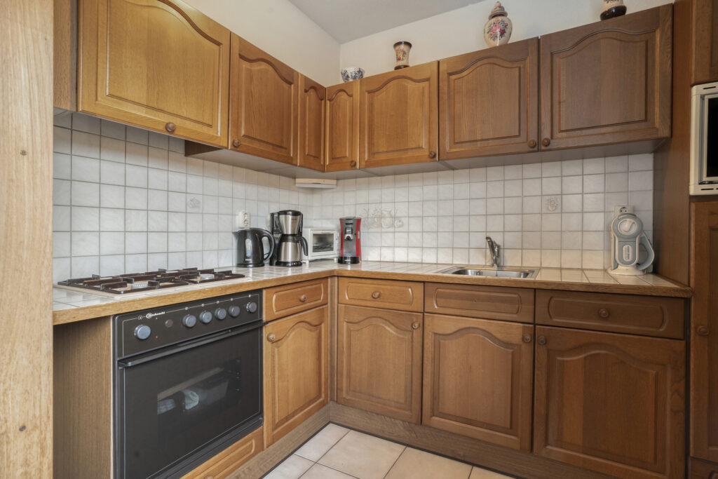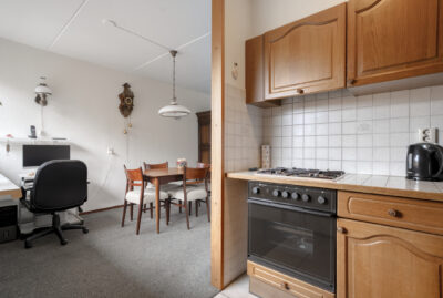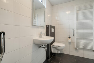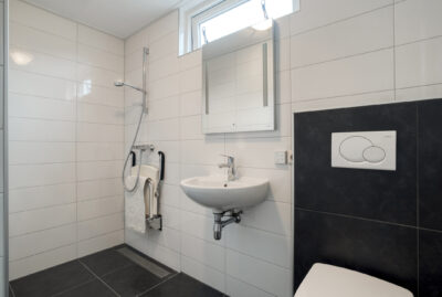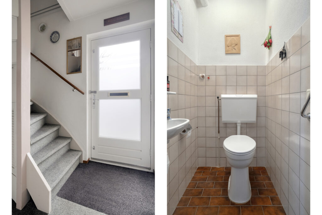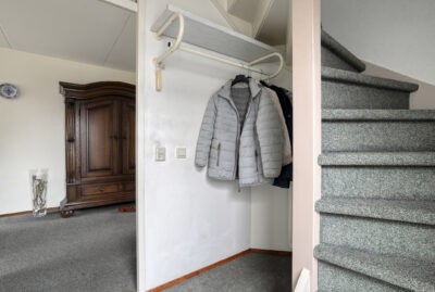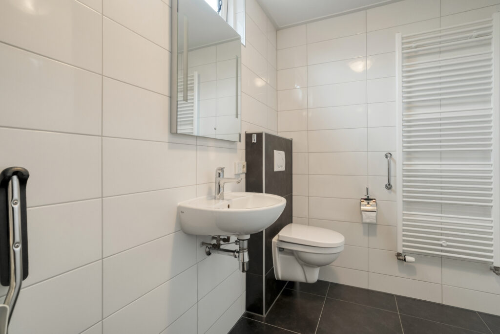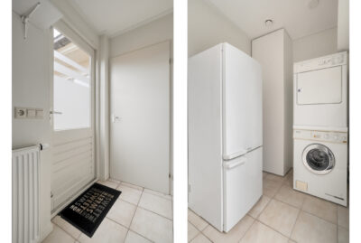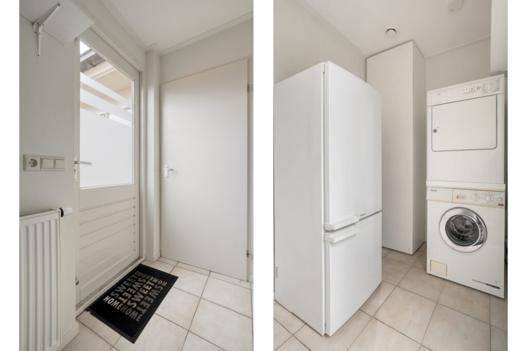 Verder is er een praktische bijkeuken met wasmachine en droger aansluiting. Via de bijkeuken heb je ook toegang tot de slaapkamer en badkamer op de begane grond.