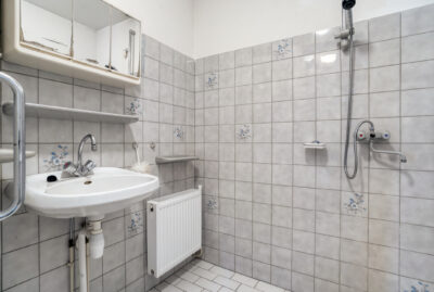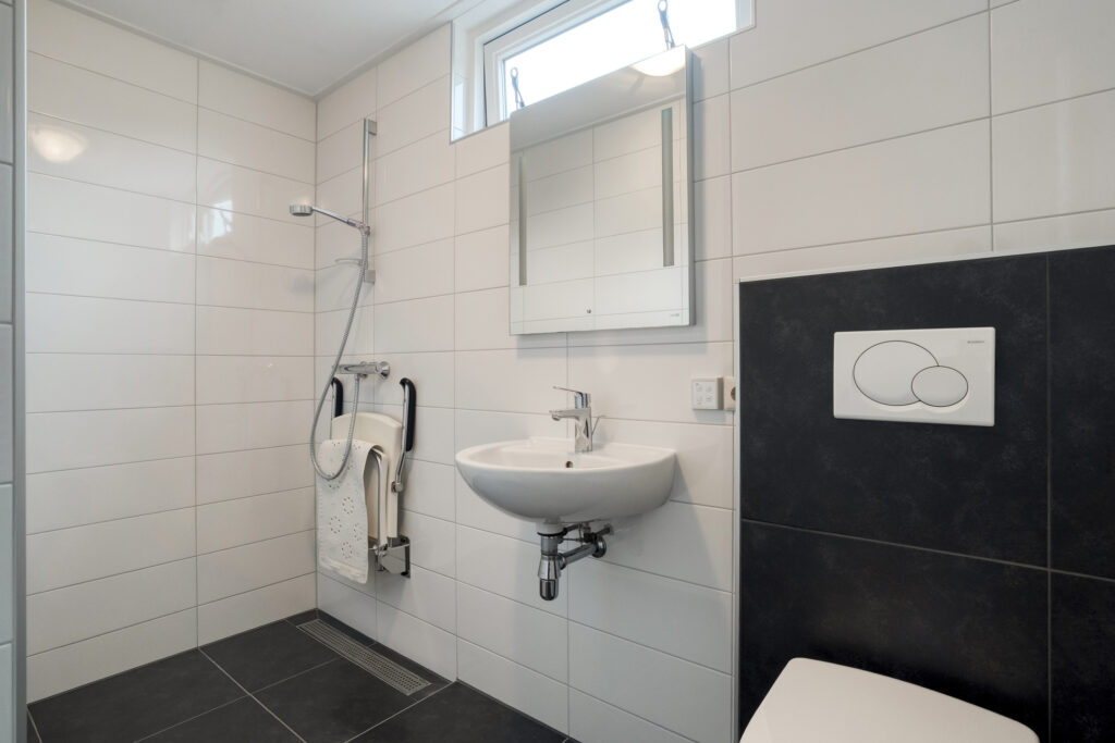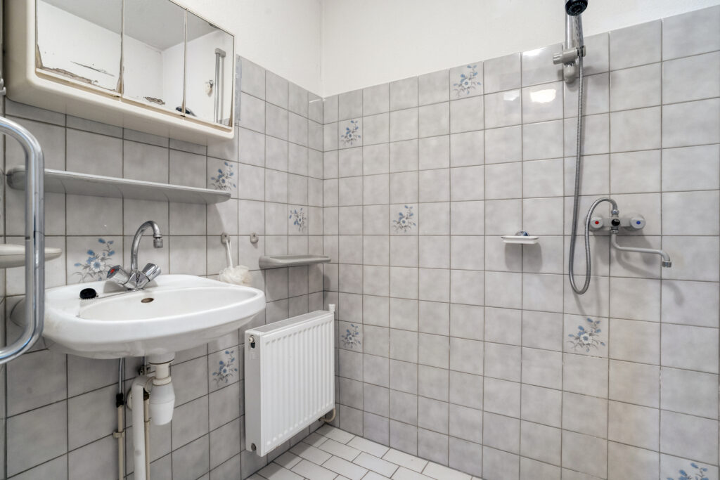 De slaapkamer heeft een laminaatvloer, kastenwand en badkamer en-suite en is voorzien van een toilet, douche, wastafel en design radiator.