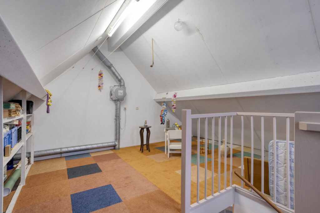 De zolderverdieping is via de vaste trap bereikbaar, deze is prima te gebruiken als bijvoorbeeld bergzolder, hobbyruimte, kantoor of extra slaapruimte.