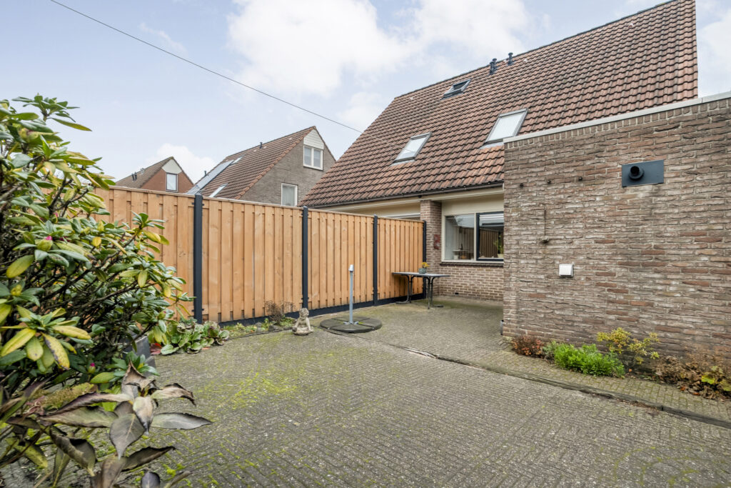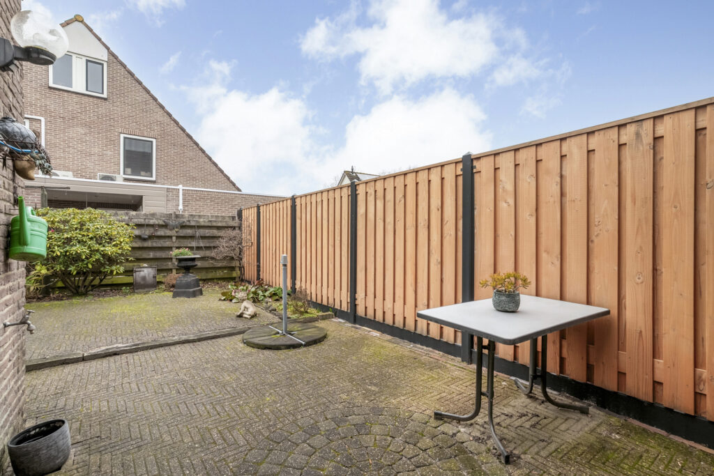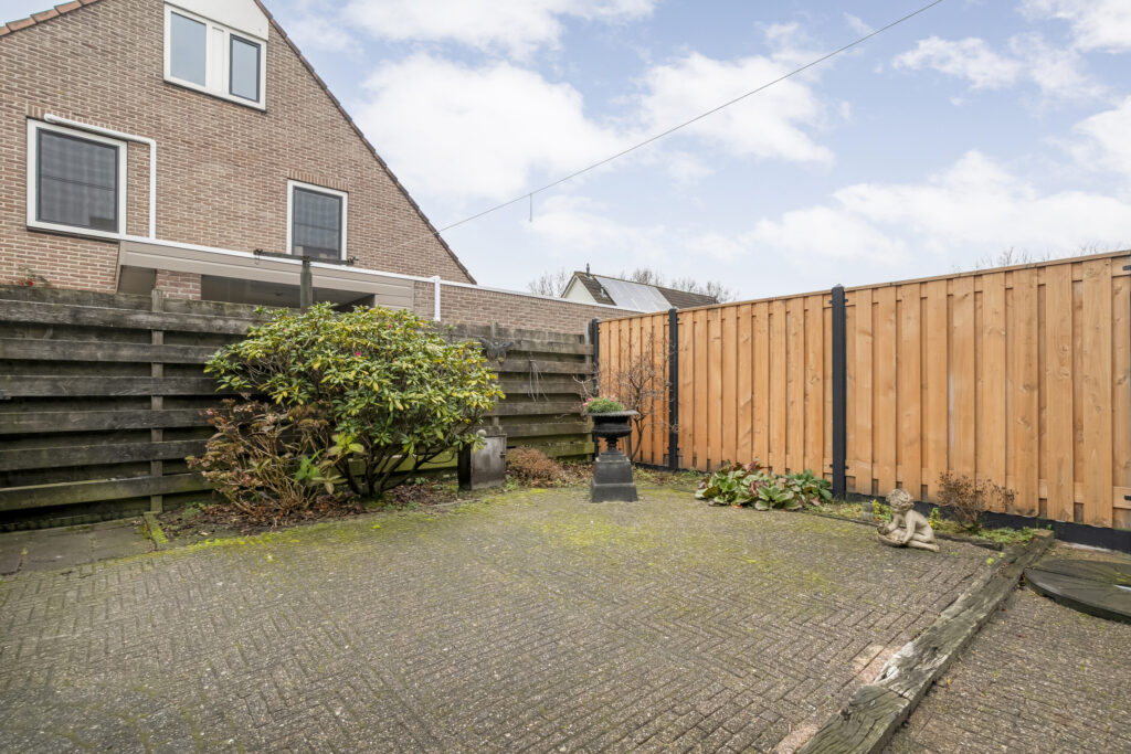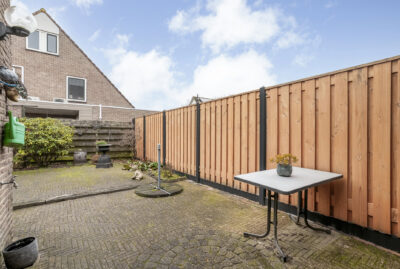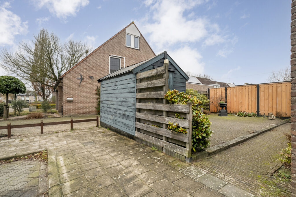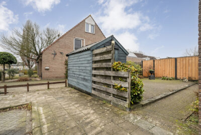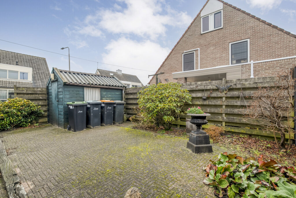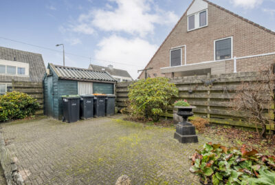 De achtertuin ligt op het Zuidwesten, is onderhoudsvriendelijk aangelegd en er staat nog een houten bergschuurtje voor het opbergen van tuingereedschap en of fietsen.