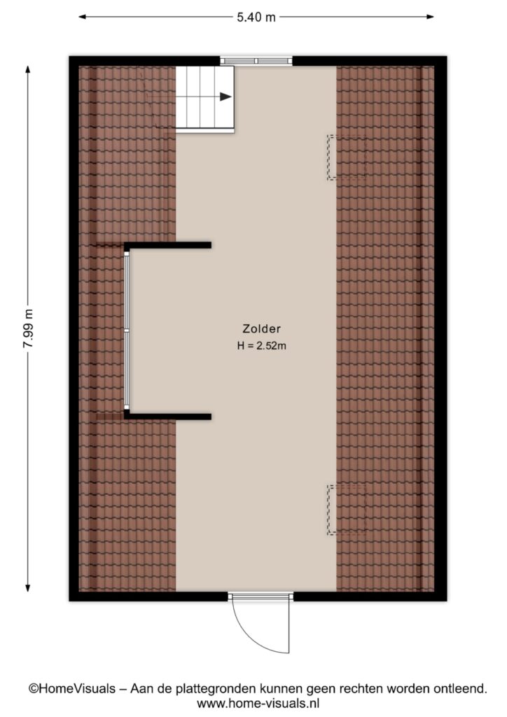 Op de tweede verdieping, bereikbaar via een vaste trap, is nog een ruime zolderruimte, welke ook nog voor diverse doeleinden geschikt is.