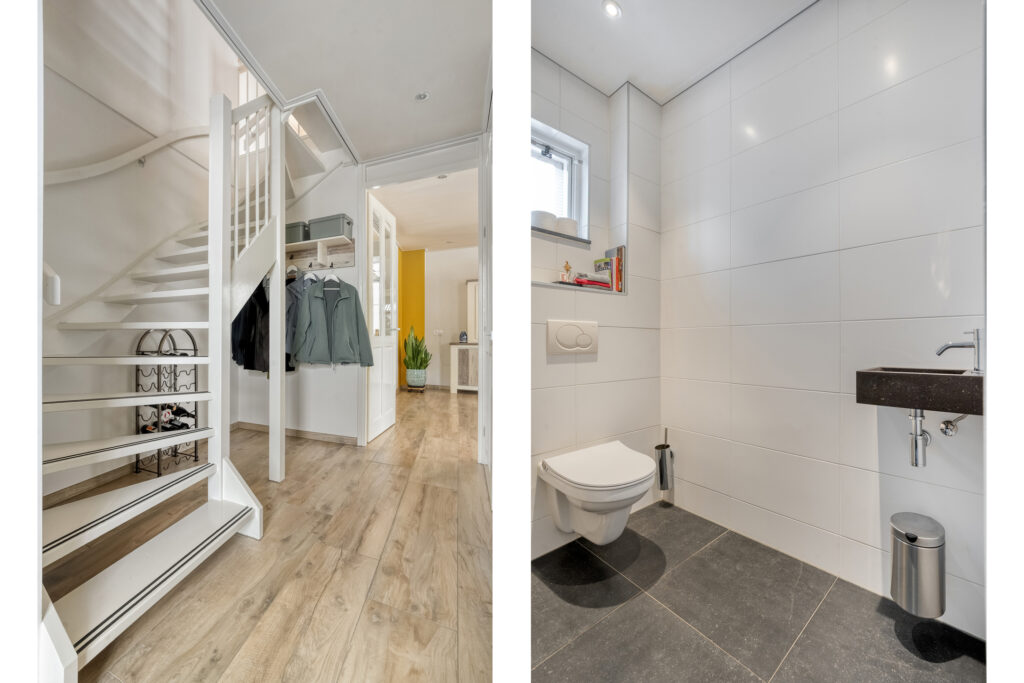 De woning beschikt tevens over een ruime garage met verdieping, ideaal voor opslag, hobbyruimte of werkplaats.