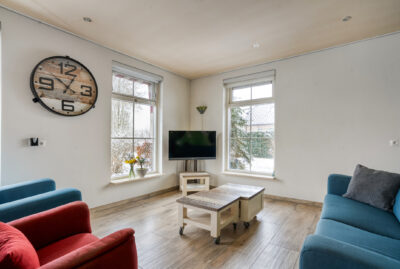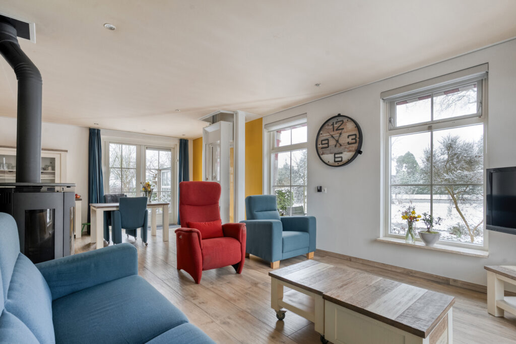 De woning beschikt over een sfeervolle woonkamer met veel lichtinval en fraai uitzicht op de tuin.