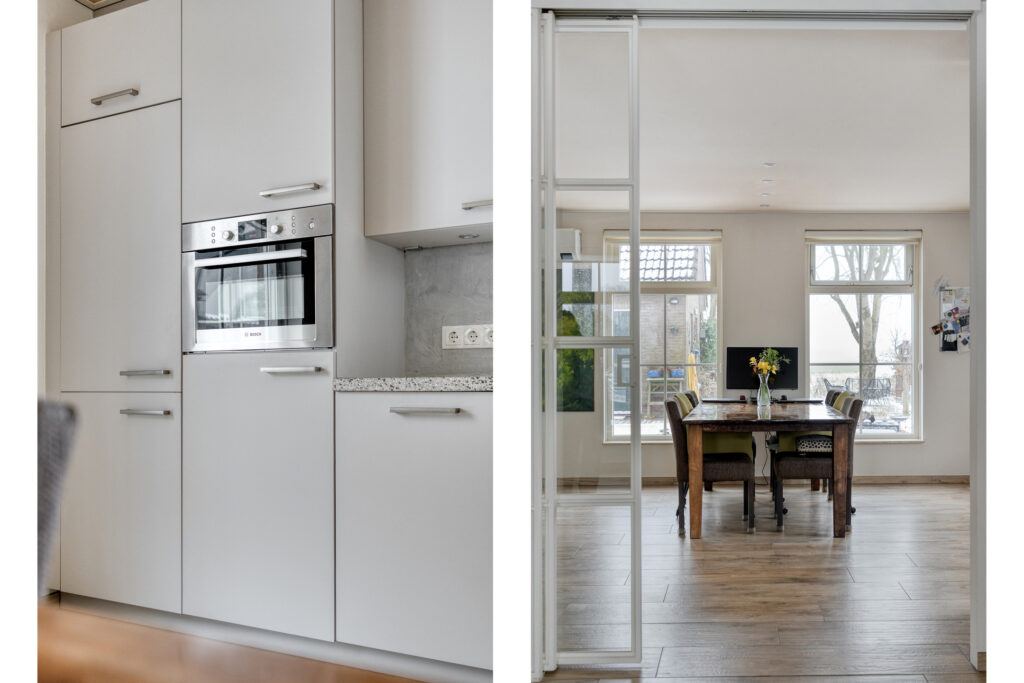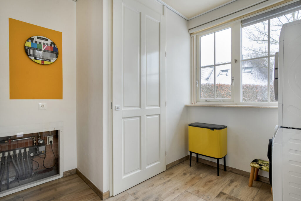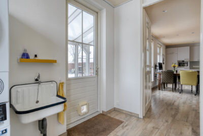 Aansluitend bevindt zich een praktische bijkeuken met extra bergruimte en aansluitingen voor witgoed.