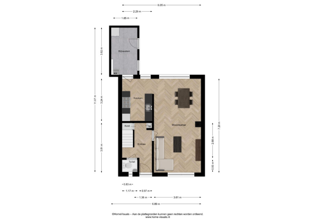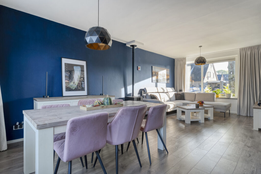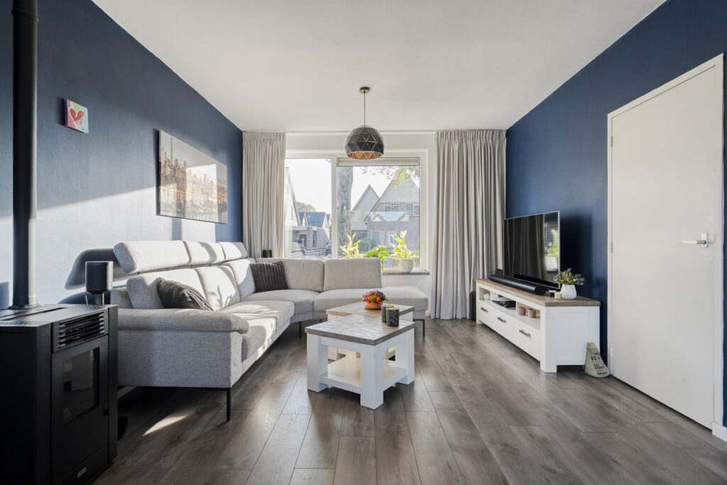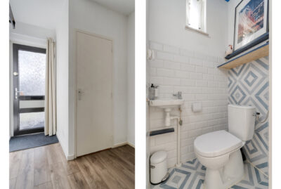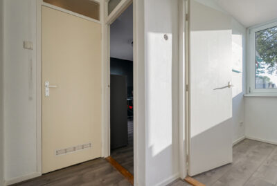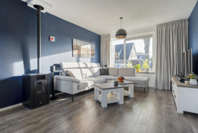 De woning bestaat uit een entree/hal met toilet en trapopgang. Een lichte woonkamer welke is voorzien van een pelletkachel, vloerverwarming en kunststof kozijnen met HR en HR++ beglazing – comfortabel en onderhoudsarm!