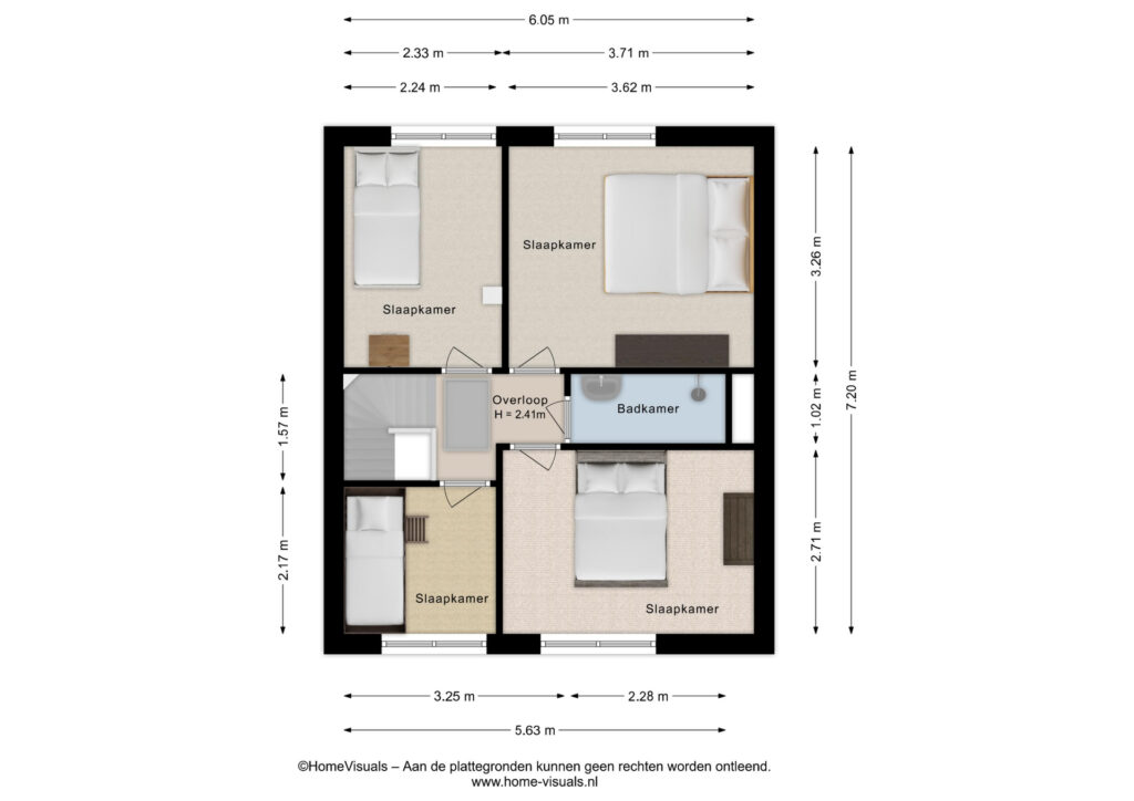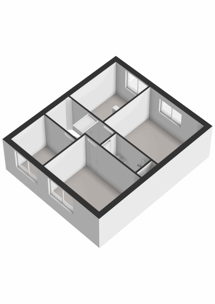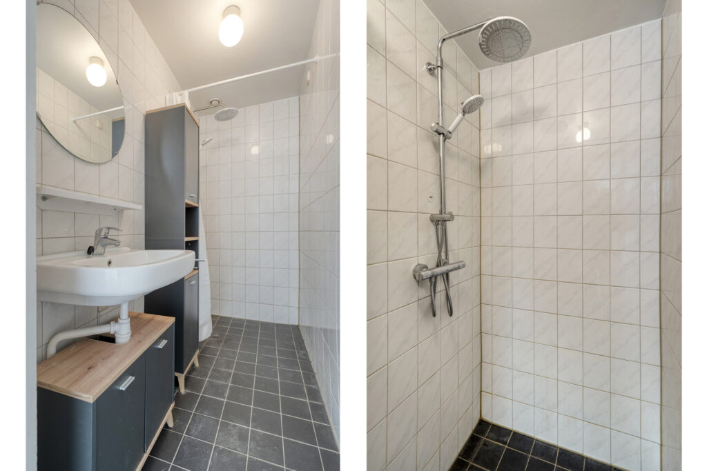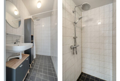 Op de verdieping is de overloop met toegang tot 4 slaapkamers en de badkamer met douche en wastafel.