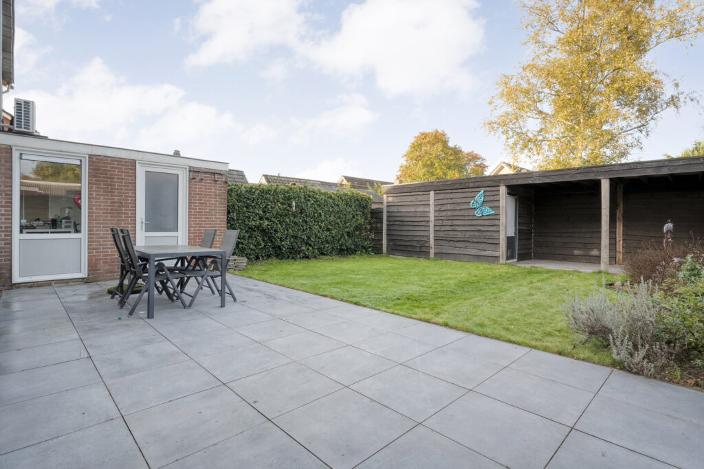 De achtertuin ligt gunstig op de zon en biedt volop privacy — ideaal om te genieten van lange zomeravonden.