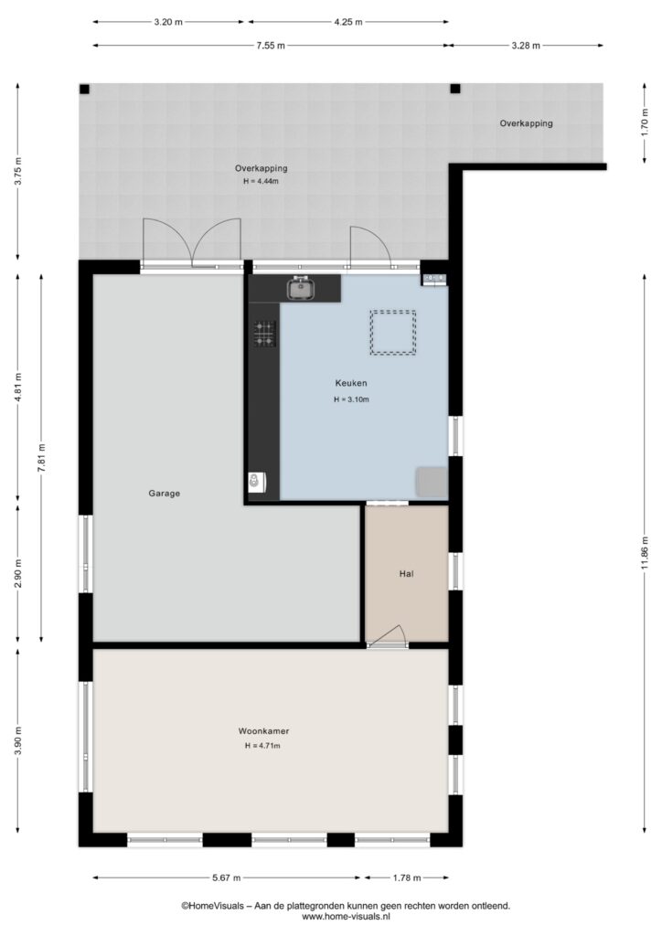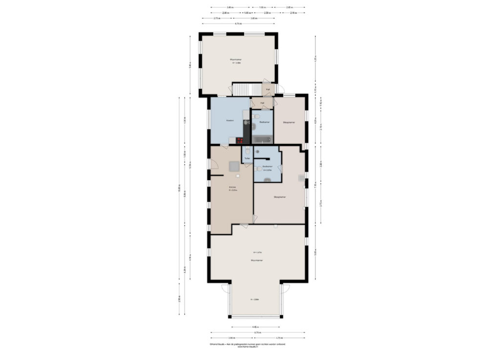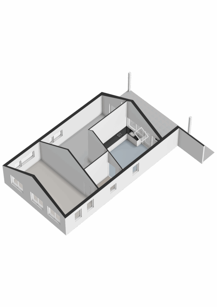De woning bestaat uit een ruime entree met aan de noord-oost zijde de keuken, een woonkamer, een slaapkamer en een badkamer.